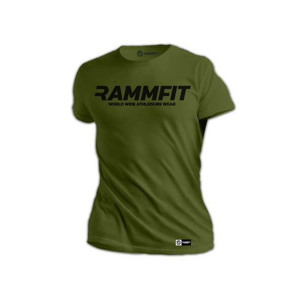 The Relentless Collection Wordmark on Military Green by RAMMFIT ATHLEISURE is a bold statement piece for those who refuse to settle for mediocrity.